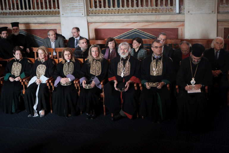 Στη Μεγάλη Αίθουσα του Πανεπιστημίου Αθηνών του Εθνικού και Καποδιστριακού Πανεπιστημίου Αθηνών, οι πρυτανικές αρχές γιόρτασαν, παρουσία του αρχιεπισκόπου Αθηνών και πάσης Ελλάδος Ιερωνύμου, την ημέρα των Τριών Ιεραρχών και της Παιδείας.
