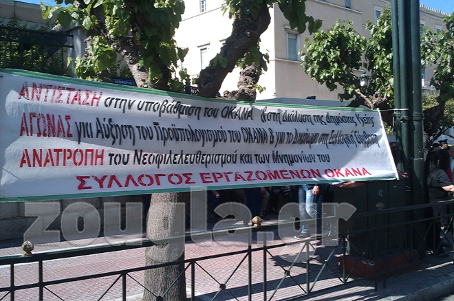 Συγκέντρωση διαμαρτυρίας έξω από τη Βουλή πραγματοποιούν αυτήν την ώρα οι εργαζόμενοι στον Οργανισμό κατά των Ναρκωτικών, την ώρα της συζήτησης επίκαιρης ερώτησης του ΣΥΡΙΖΑ για τα ζητήματα που τους απασχολούν.