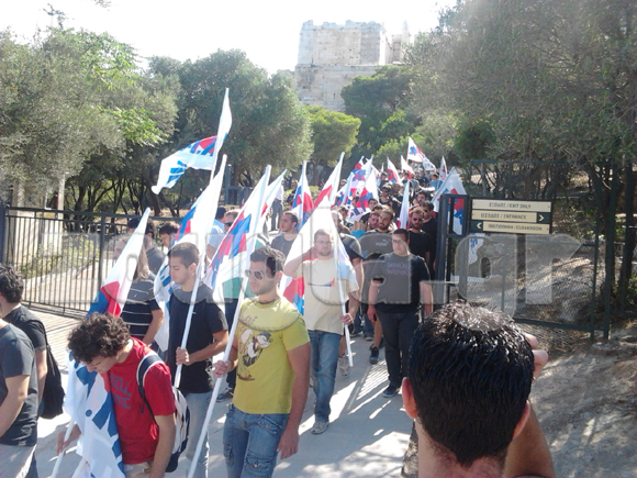 Έπειτα έφθασαν στον χώρο άλλα 150 άτομα, μέλη του ΠΑΜΕ και όλοι μαζί παραμένουν μέχρι συτή την ώρα στην Ακρόπολη, φωνάζοντας συνθήματα και διευκρινίζοντας πως δεν σκοπεύουν να κάνουν κατάληψη του χώρου.