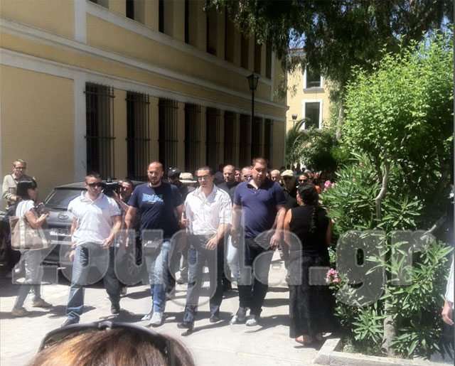 Αφού περπάτησε μέχρι το κατώφλι του κτηρίου 16, οι «παρατρεχάμενοι» έκαναν έναν κλοιό γύρω του και, προκειμένου να δώσουν τον απαραίτητο χώρο, απώθησαν τα δεκάδες συνεργεία που περίμεναν να προβεί σε δηλώσεις. Ο ίδιος ανέμενε με υπομονή να προετοιμαστούν οι δημοσιογράφοι, για να μιλήσει δημόσια για το πολυσυζητημένο επεισόδιο και τις δικαστικές εξελίξεις.