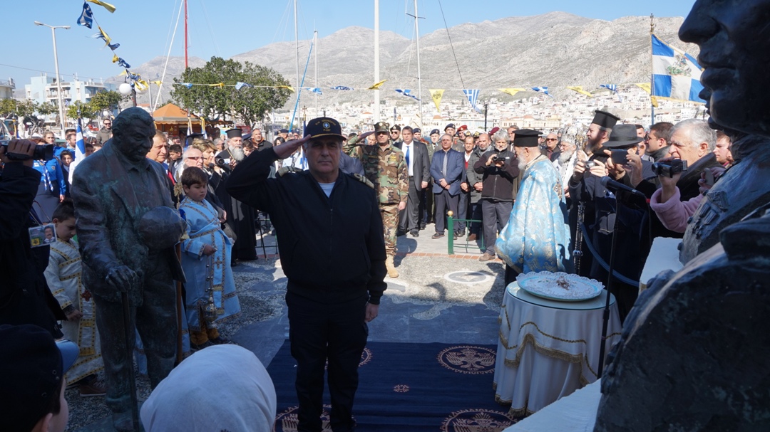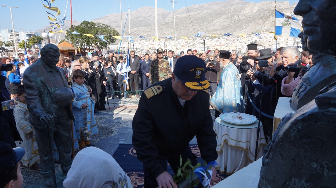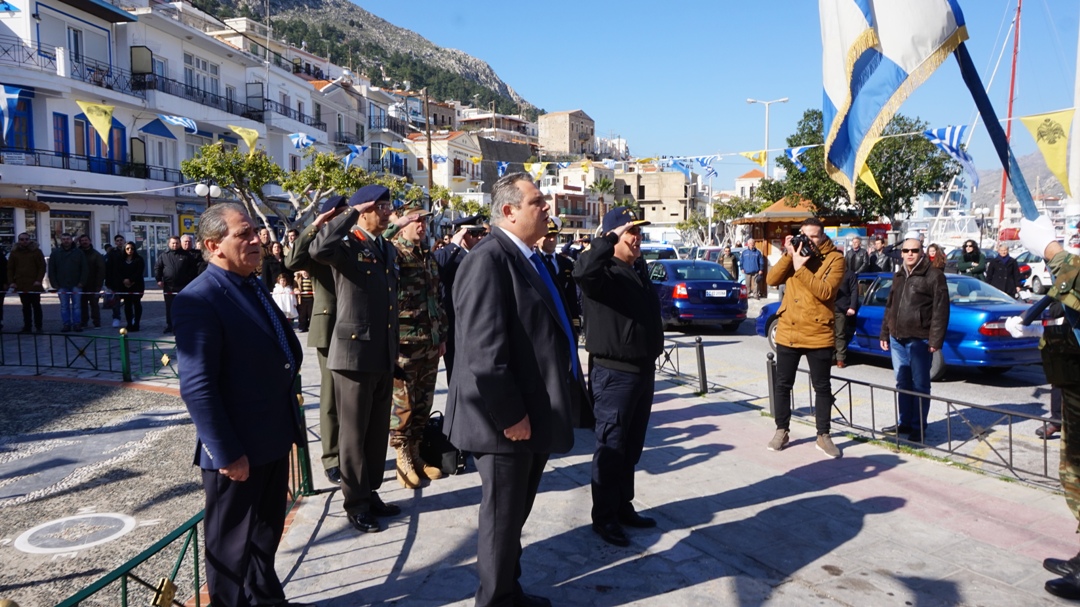 Ο Υπουργός Εθνικής Άμυνας Πάνος Καμμένος, μετά τη ρίψη στεφάνου στην περιοχή που έπεσε το ελικόπτερο στα Ίμια, μετέβη στην Κάλυμνο, όπου παρέστη στις εκδηλώσεις μνήμης προς τιμήν των τριών ηρώων Αξιωματικών του Πολεμικού Ναυτικού Παναγιώτη Βλαχάκου, Χριστόδουλου Καραθανάση και Έκτορα Γιαλοψού.