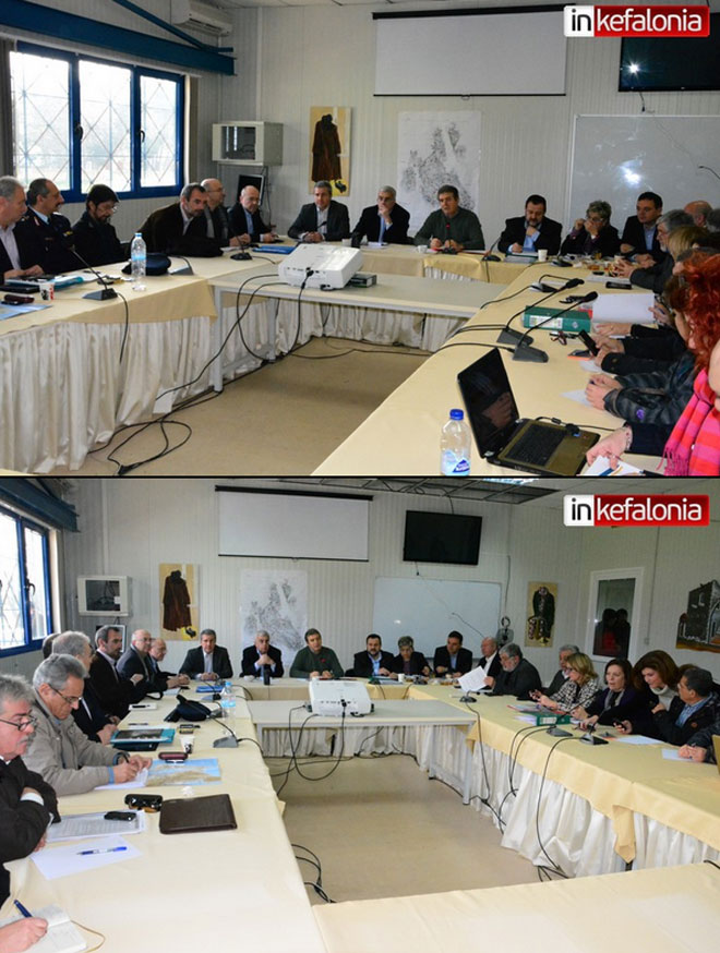 Σε ευρεία σύσκεψη, που πραγματοποιήθηκε το πρωί στο Κέντρο Επιχειρήσεων, που έχει στηθεί στο ΤΕΙ Ιονίων Νήσων υπό τον Μ. Χρυσοχοΐδη, συμμετείχαν ο υφυπουργός Εργασίας Β. Κεγκέρογλου, ο Γενικός Γραμματέας Δημοσίων Έργων Στ. Σιμόπουλος, ο Γενικός Γραμματέας Συντονισμού Κυβέρνησης Δ. Βαρτζόπουλος, ο Γενικός Διευθυντής Συγκοινωνιακών Έργων κ. Μακρής, ο Γενικός Γραμματέας Ενημέρωσης Α. Κατσανιώτης, ο Αντιπρόεδρος ΟΑΣΠ Ευθ. Λέκκας, ο Γενικός Γραμματέας Έρευνας και Τεχνολογίας κ. Βασιλάκος, ο πρόεδρος ΕΥΔΑΠ κ. Βαρθολομαίος, ο πρόεδρος ΣΤΑΣΥ κ. Παπαθανάσης, ο Περιφερειάρχης Ιονίων Νήσων κ. Σπύρου, ο Αντιπεριφερειάρχης Κεφαλληνίας και Ιθάκης κ. Κουρής, ο Δήμαρχος Κεφαλληνίας κ. Παρίσης, εκπρόσωποι των ΤΑΣ, ΟΣΚ και ΥΑΣ, καθώς και εκπρόσωποι του Γεωδυναμικού Ινστιτούτου.