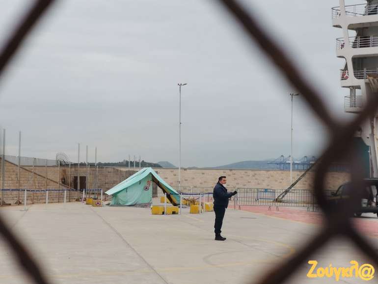Αυτή την ώρα έχει στηθεί τέντα του ΕΟΔΥ για το ιατρικό και νοσηλευτικό προσωπικό έξω από το πλοίο.