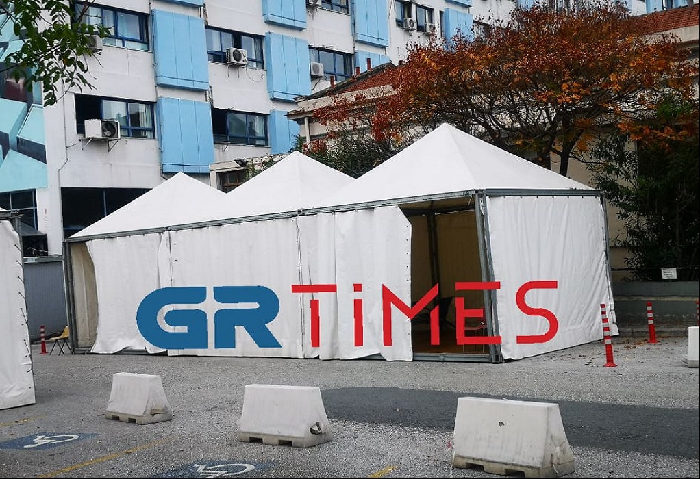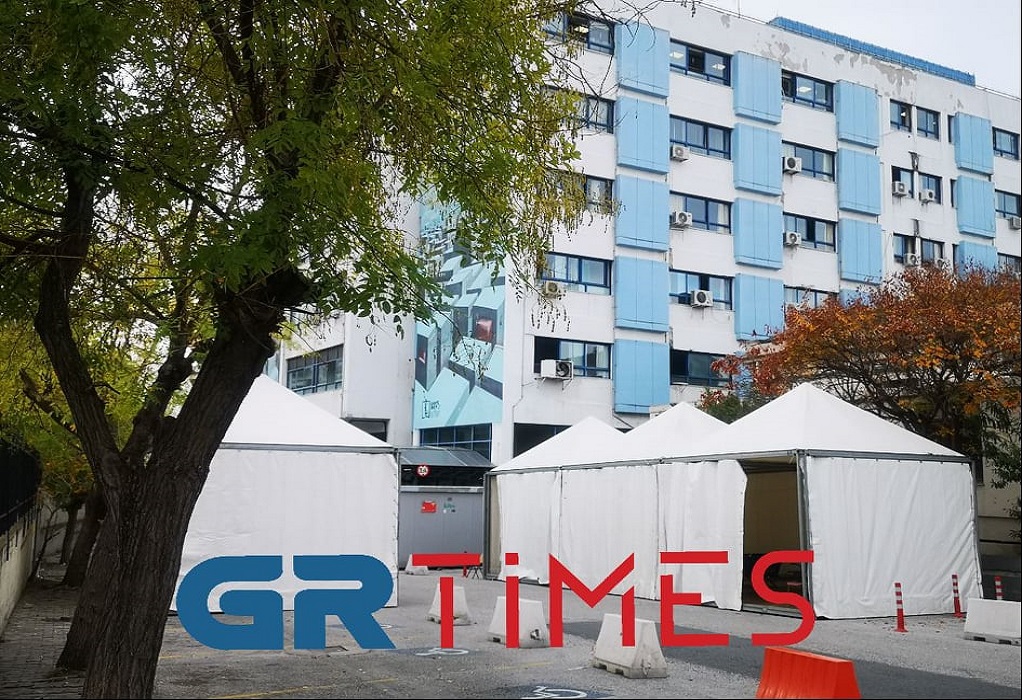 Tέντες στήθηκαν και στους εξωτερικούς χώρους του Ιπποκράτειου Νοσοκομείου Θεσσαλονίκης, σε μια προσπάθεια ενίσχυσης των υποδομών και κάλυψης των αυξημένων αναγκών που δημιουργούνται λόγω της πανδημίας.