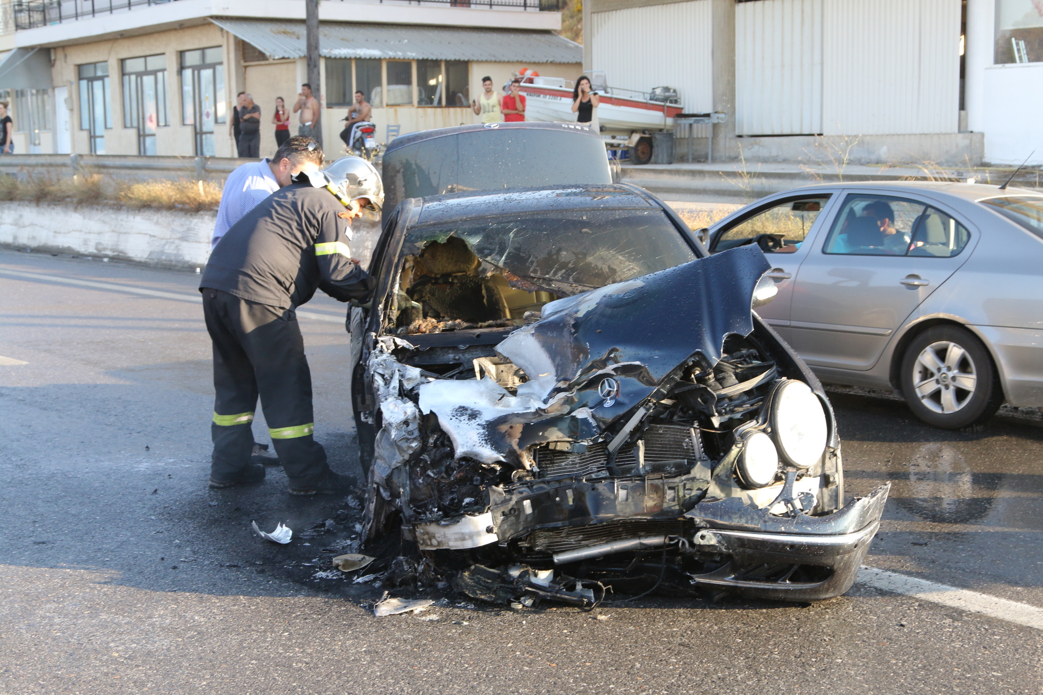 Το ένα όχημα τυλίχτηκε στις φλόγες όμως ο οδηγός του κατάφερε να βγει εγκαίρως. Μέσα σε αυτό παρέμεινε ο συνεπιβάτης, ο οποίος ήταν σοβαρά τραυματισμένος.