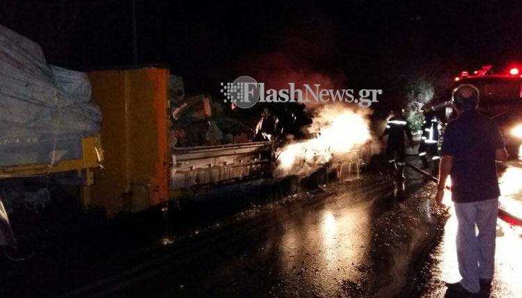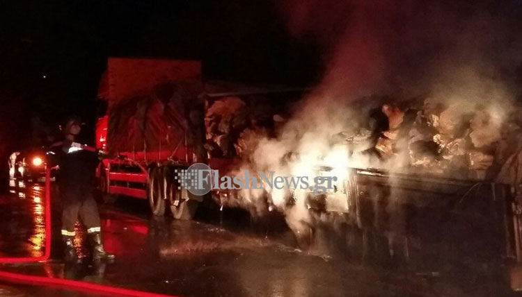 Το φορτηγό βρισκόταν στην παλαιά εθνική οδό Χανίων – Ρεθύμνο. στον δρόμο που περνά από το Ναύσταθμο Κρήτης, όταν κάτω από συνθήκες που ερευνώνται, ξέσπασε φωτιά στο πίσω μέρος του ρυμουλκού.