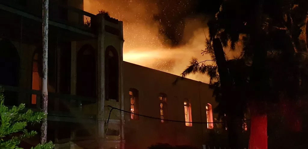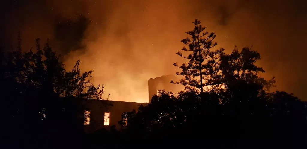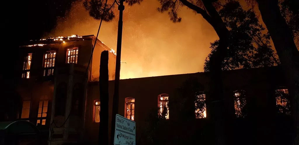 Η καταστροφή είναι ολοσχερής: το εσωτερικό του κτηρίου είχε πολλές ξύλινες κατασκευές.