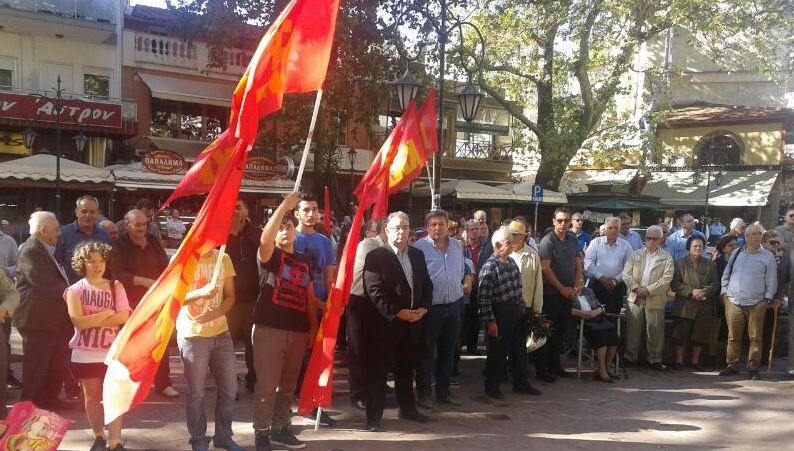 Στην πλατεία Λαού της Λαμίας, στο άγαλμα του Άρη Βελουχιώτη, γιόρτασε το ΚΚΕ την απελευθέρωση της Λαμίας από τους Γερμανούς τον Οκτώβριο του 1944.