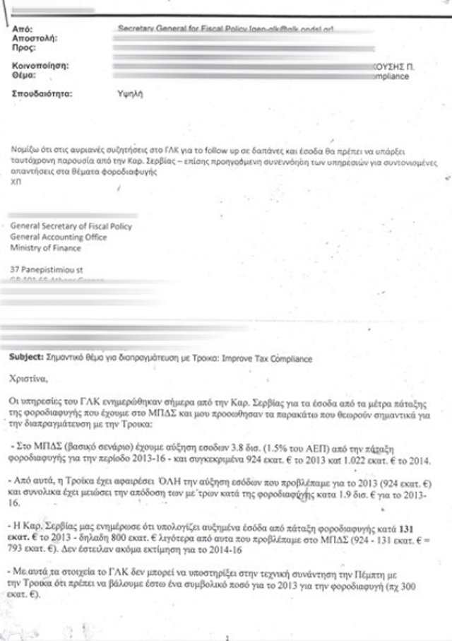 Κάτι το οποίο επιβεβαιώνεται από το Γενικό Λογιστήριο καθώς στις 26 Ιουλίου 2012 ο Γενικός Διευθυντής του Γενικού Λογιστηρίου κάνει αίτηση στην Γενική Γραμματέα Δημοσιονομικής Πολιτικής, για την προμήθεια ενός κεντρικού καταστροφέα εγγράφων, προκειμένου να σταματήσει η διαρροή των… σκουπιδιών.