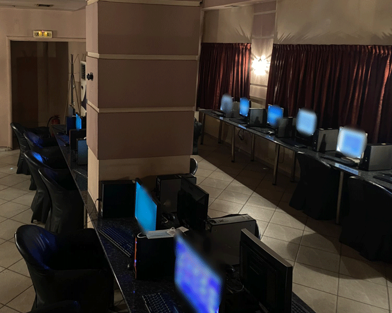 Συγκεκριμένα, διαπιστώθηκε ότι στο κατάστημα είχαν εγκατασταθεί ηλεκτρονικοί υπολογιστές για τη διενέργεια παράνομων διαδικτυακών τυχερών παιγνίων, ενώ η διαχείριση γινόταν μέσω υπολογιστή – server.