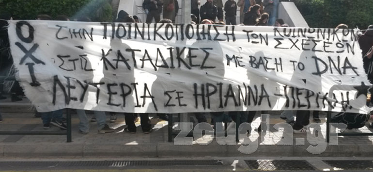Συλλογικότητες της Αριστεράς και του αντιεξουσιαστικού χώρου καθώς και φοιτητικοί σύλλογοι με σύνθημα «Να αθωωθεί η Ηριάννα», «Να καταργηθεί τώρα ο τρομονόμος» βρίσκονται έξω από το Πενταμελές Εφετείο της Αθήνας όπου έχει οριστεί να αρχίσει σήμερα η δίκη με κατηγορούμενους την Ηριάννα Λ. και τον Περικλή Μ..