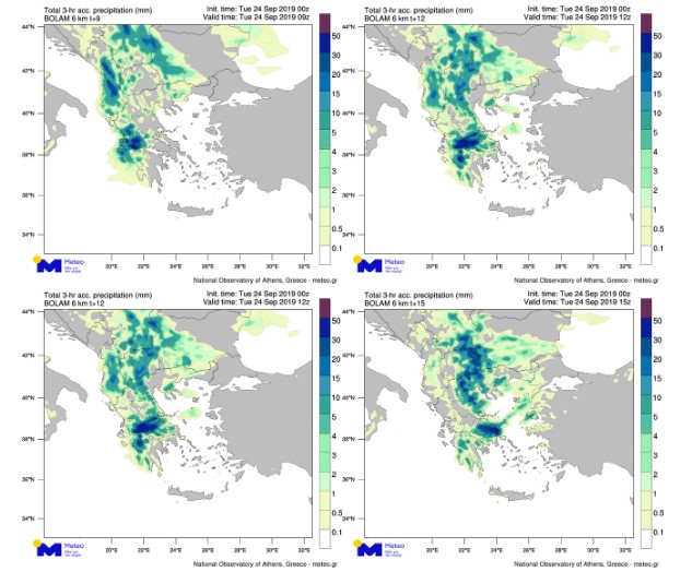 Για το υπόλοιπο της Τρίτης αναμένεται σταδιακή επέκταση των φαινομένων στα υπόλοιπα ηπειρωτικά, ενώ από το απόγευμα τα φαινόμενα θα εντοπίζονται στη Μακεδονία, στη Θράκη, στην ανατολική Θεσσαλία, στην Εύβοια και στο Αιγαίο.
