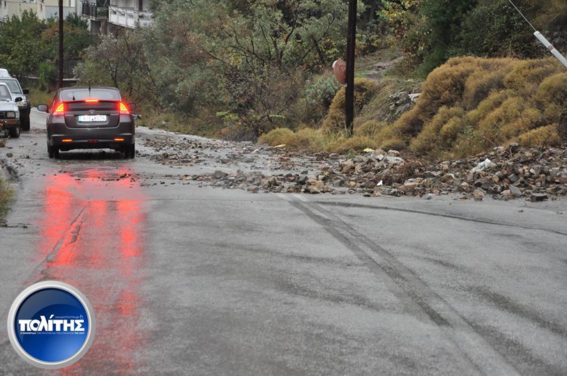 Παράλληλα, αναφέρθηκαν ζημιές στο οδικό δίκτυο της Αμανής από καταπτώσεις βράχων στο οδόστρωμα.