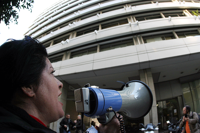 Διαμαρτυρία στο υπουργείο Οικονομικών στην οδό Νίκης πραγματοποιούν ακόμα μια φορά οι απολυμένες καθαρίστριες του υπουργείου.