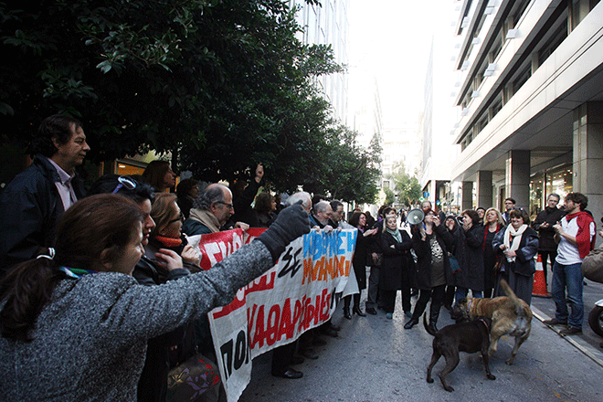 Διαμαρτυρία στο υπουργείο Οικονομικών στην οδό Νίκης πραγματοποιούν ακόμα μια φορά οι απολυμένες καθαρίστριες του υπουργείου.