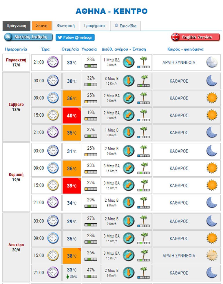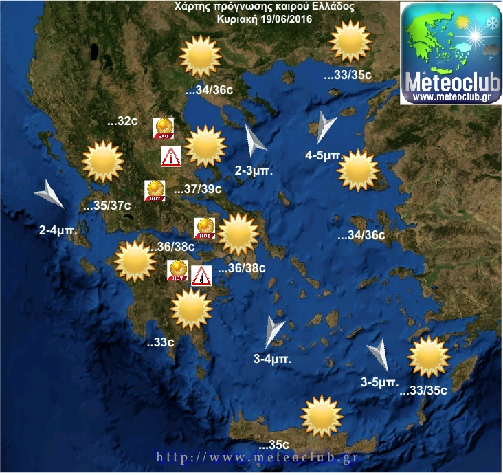 Oι θερμές αέριες μάζες που αναμένεται να επισκεφθούν τη χώρα μας τις επόμενες ημέρες θα ανεβάσουν σημαντικά τον υδράργυρο. Πρόκειται ουσιαστικά για το πρώτο σοβαρό / θερμό επεισόδιο η διάρκεια του οποίου φαίνεται πως θα κρατήσει έως την Τρίτη 21 Ιουνίου.
