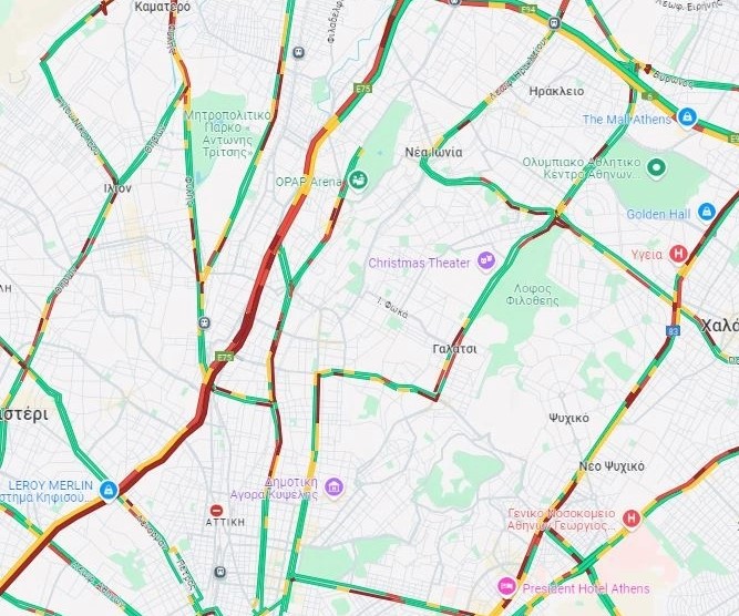 Καθυστερήσεις σημειώνονται επίσης μετά την Πέτρου Ράλλη και συνεχίζονται μέχρι και πριν τη γέφυρα της Μεταμόρφωσης, όπου υπάρχει και ακινητοποιημένο όχημα.