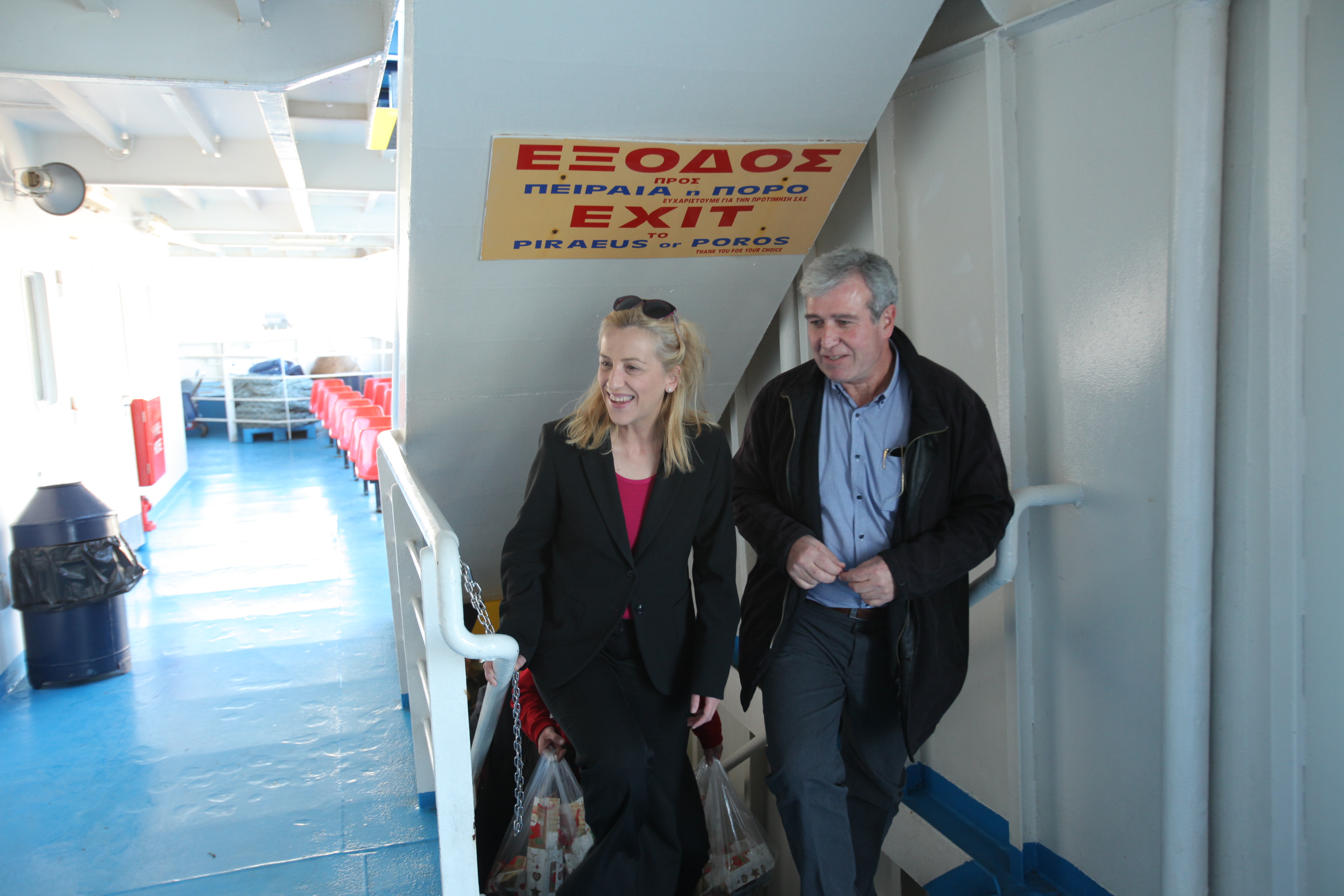 Η περιφερειάρχης Αττικής, συνομίλησε και αντάλλαξε ευχές με τα πληρώματα των πλοίων και επιβάτες στην προβλήτα του Αργοσαρωνικού.