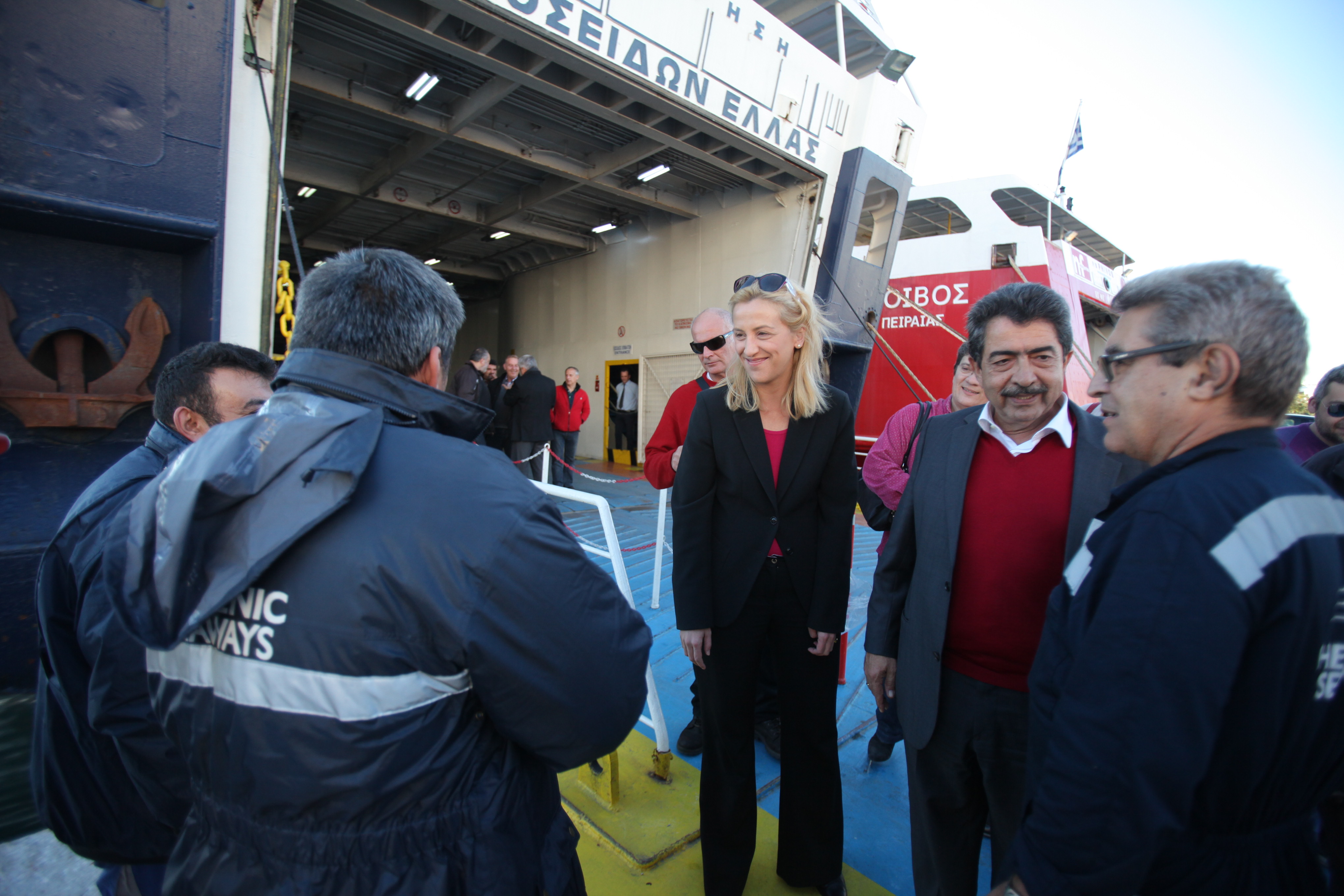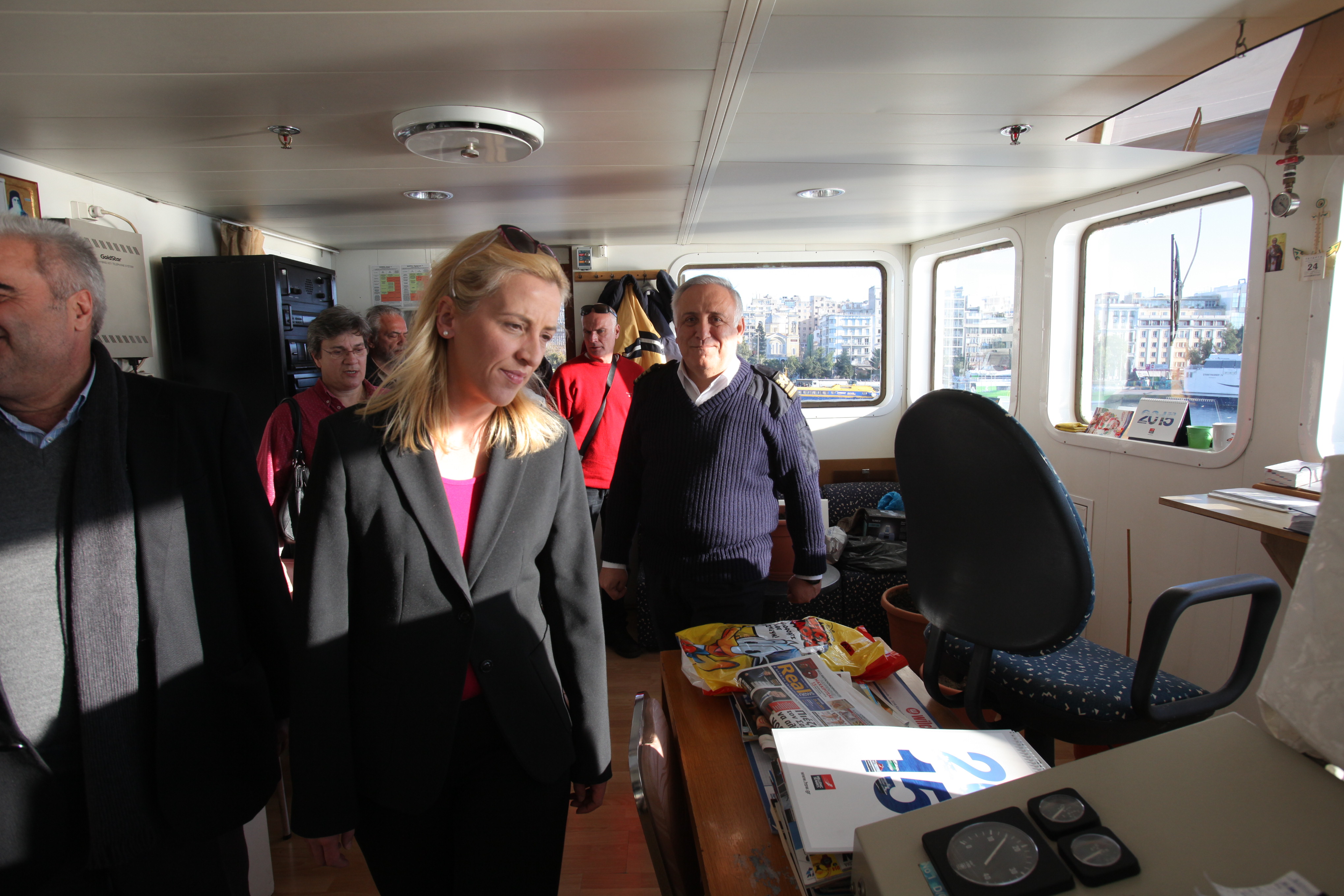 Μάλιστα, η κα Δούρου επιβιβάστηκε στο πλοίο «Ποσειδών Ελλάς», στους χώρους και τη γέφυρα του οποίου ξεναγήθηκε από τον καπετάνιο.