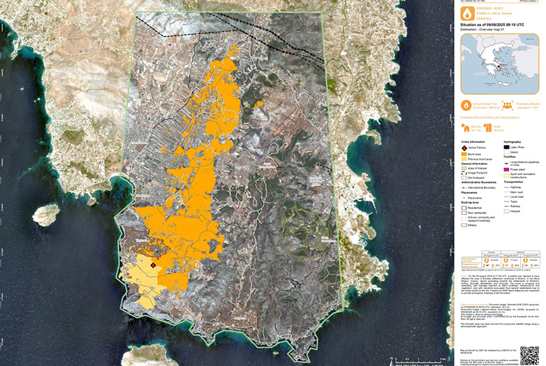 Σε μια αποτίμηση των ζημιών που προκάλεσε η πυρκαγιά της Κερατέας, στην περιοχή της Λαυρεωτικής, προέβη το υπουργείο Κλιματικής Κρίσης και Πολιτικής Προστασίας, με βάση τη δορυφορική λήψη που έγινε από την Υπηρεσία Copernicus το Σάββατο, 9 Αυγούστου και ώρα 12:19.