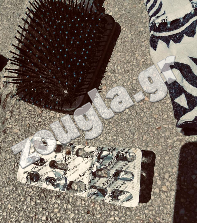 Η χτυπημένη βούρτσα και η άδεια καρτέλα με τα χάπια Lyrica