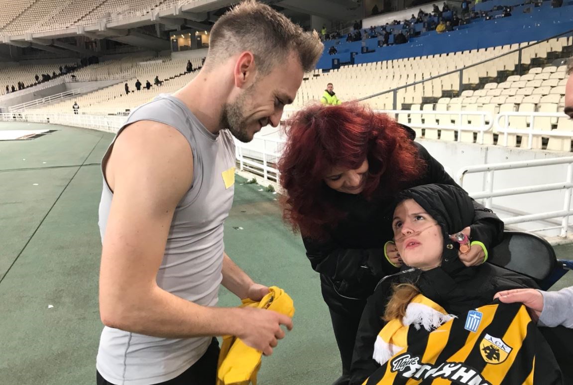 Η 20χρονη πλέον Μυρτώ μαζί με την μητέρα της βρέθηκε στο ταρτάν του ΟΑΚΑ μετά την ολοκλήρωση του αγώνα με τον ΠΑΟΚ και φωτογραφήθηκε με παίκτες της Ένωσης.