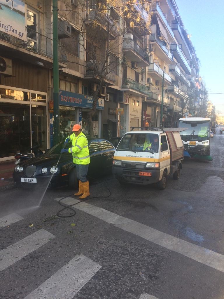 Οι άνθρωποι της Διεύθυνσης Καθαριότητας χρησιμοποιώντας ένα μεγάλο αριθμό τεχνικών μέσων (πέντε μηχανικά σάρωθρα, πέντε πλυστικά, μία υδροφόρα) σκούπισαν, καθάρισαν κι έπλυναν κεντρικούς δρόμους στο πυκνοκατοικημενο και επιβαρυμένο κυκλοφοριακά τις εργάσιμες μέρες και ώρες, Παγκράτι.