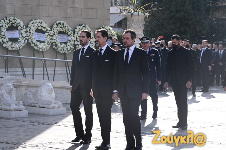 Στο παρεκκλήσι της Μητρόπολης Αθηνών έφτασαν κατά σειρά, η ευρωβουλευτής και βαφτισιμιά του τέως βασιλιά, Άννα Μισέλ Ασημακοπούλου (9:00), ο βουλευτής του Ελληνικού Κοινοβουλίου, αναπληρωτής υπουργός και πρώην ευρωβουλευτής της Νέας Δημοκρατίας, Γιώργος Κουμουτσάκος (9:30), ο πρόεδρος της Πατριωτικής Δύναμης Αλλαγής, Κωσταντίνος Μπογδάνος (9:30) και ο πρώην πρωθυπουργός και βουλευτής της Νέας Δημοκρατίας, Αντώνης Σαμαράς, το οποίον συνόδευσε η σύζυγός του, Γεωργία Σαμαρά. Στο σημείο έφτασαν επίσης, ο πρώην βουλευτής Αχαΐας και Πρόεδρος του Χριστιανοδημοκρατικού Κόμματος Ελλάδος, Νίκος Νικολόπουλος, ο πρώην βουλευτής των ΑΝΕΛ Δημήτρης Καμμένος, ο πρώην βουλευτής της Ν.Δ. Γιώργος Καλατζής, οι βουλευτές Ν. Δ. Δημήτρης Βαρτζόπουλος, Μιλτιάδης Χρυσομάλλης και Περικλής Μαντάς. Μετά από λίγο έφτασαν ο αντιπρόεδρος της κυβέρνησης Παναγιώτης Πικραμμένος και η υπουργός Πολιτισμού Λίνα Μενδώνη, οι οποίοι αποδοκιμάστηκαν από το πλήθος.