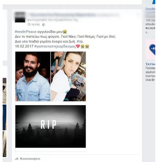 Πρόκειται για τον 29χρονο Νίκο Καποτά και την 19χρονη Δήμητρα Παπαδοπούλου που επέβαιναν σε μηχανή, η οποία εξετράπη της πορείας της κάτω από αδιευκρίνιστες συνθήκες. Σύμφωνα με πληροφορίες του patrisnews.com, το τροχαίο σημειώθηκε λίγο μετά τις 18.30 το απόγευμα έξω από το Βαρθολομιό. Οι δύο νέοι μεταφέρθηκαν σοβαρά τραυματισμένοι στο Κέντρο Υγείας Γαστούνης και στη συνέχεια στο Νοσοκομείο Αμαλιάδας, όπου και διαπιστώθηκε ο θάνατός του.