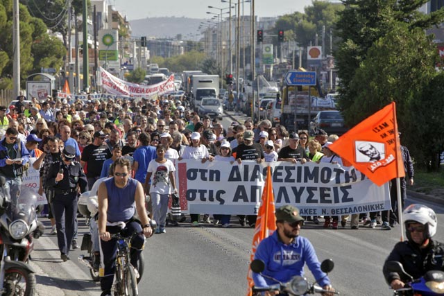 Οι μαραθωνοδρόμοι διαδηλωτές ξεκίνησαν από τη Θεσσαλονίκη στις 28 Σεπτεμβρίου με τελικό προορισμό τους την πλατεία Συντάγματος και με σύνθημα «Μαραθώνιος Πρωτογενούς Πλεονάσματος, Ανεργίας, Ανέχειας, Εξαθλίωσης».