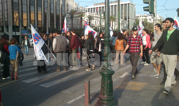 Φωνάζοντας συνθήματα όπως «Την κρίση να πληρώσει η πλουτοκρατία» τα 200 περίπου μέλη της μαθητικής οργάνωσης του ΠΑΜΕ παρέμειναν στην Αμαλίας μέχρι και τις 19.00, ενώ περίπου 50 με 70 μέλη της ΟΛΜΕ βρίσκονταν επίσης στο σημείο.