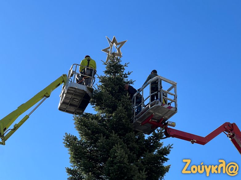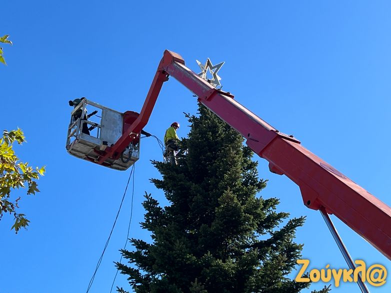Το έλατο ,το οποίο έρχεται και φέτος από το Καρπενήσι , είναι βάρους 5,5 τόνων και πάνω του θα τοποθετηθούν 24.000 λαμπάκια χαμηλής κατανάλωσης και πολλά στολίδια.