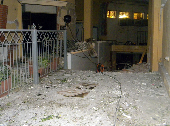 Η ισχυρή έκρηξη σημειώθηκε στις 04.10 τα ξημερώματα του Σαββάτου στην περιοχή Άγιος Κωνσταντίνος στη Λάρισα, στη συμβολή των οδών Υψηλάντου και Μανδηλαρά, και από τον εκκωφαντικό θόρυβο σηκώθηκε στο πόδι όλη η γειτονιά.