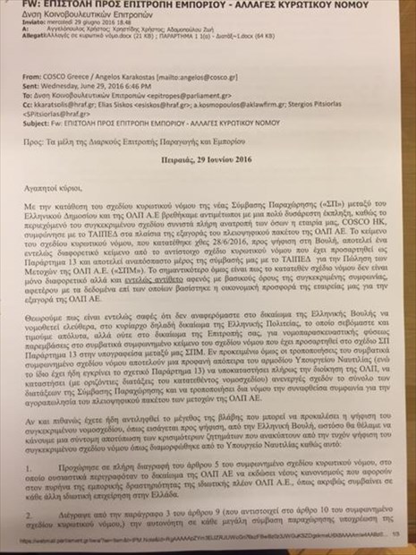 Πατήστε ΕΔΩ για να διαβάσετε την επιστολή της Cosco