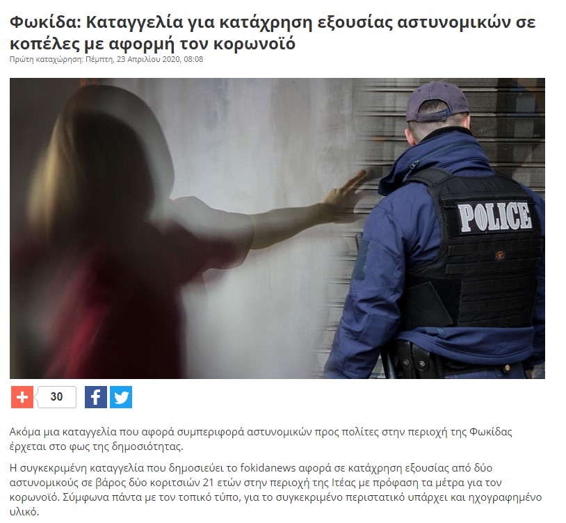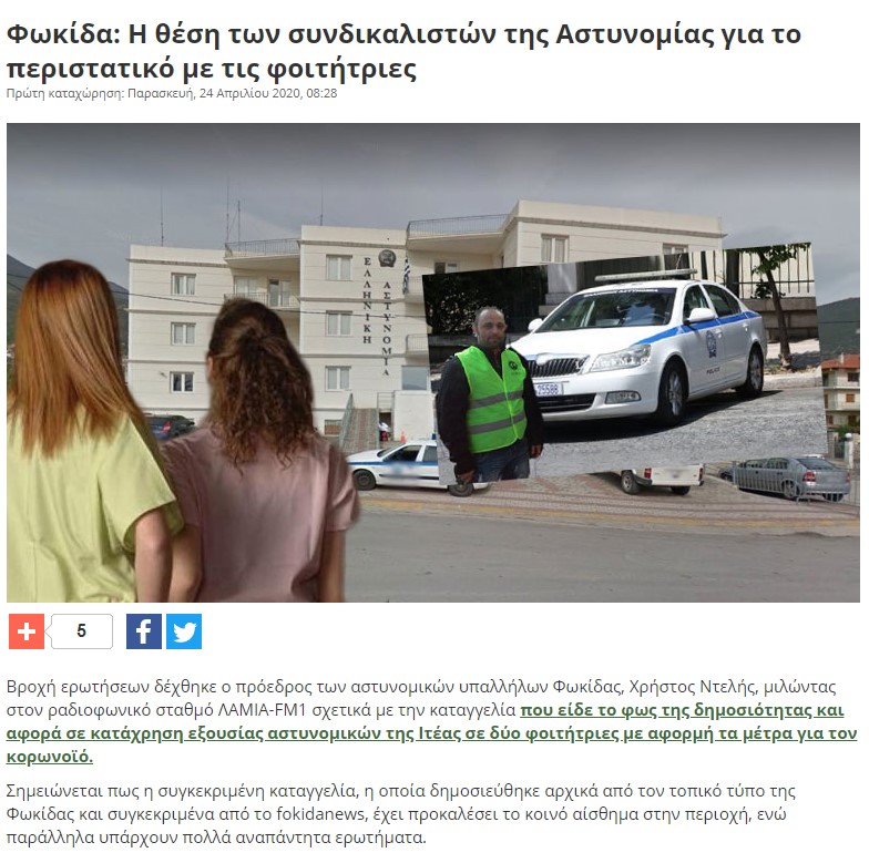Η συγκεκριμένη υπόθεση, που είδε το φως της δημοσιότητας αρχικά από τον τοπικό τύπο και συγκεκριμένα από το fokidanews, προκάλεσε αίσθηση στην ευρύτερη περιοχή, κυρίως όσον αφορά τη συμπεριφορά των αστυνομικών προς τις δύο φοιτήτριες με αφορμή τα μετρά για τον κορωνοϊό.