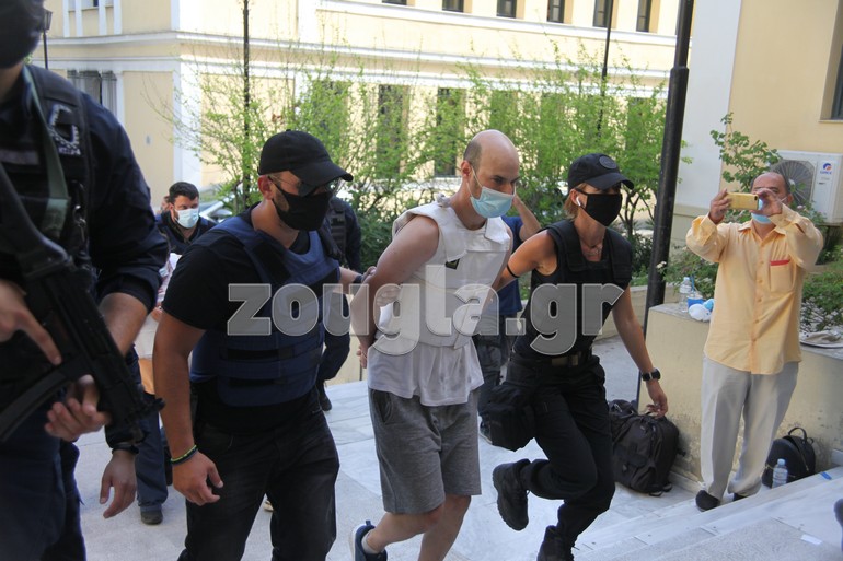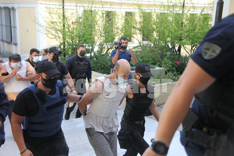 Οι κατηγορούμενοι οδηγήθηκαν στην Εισαγγελία συνοδεία ισχυρής αστυνομικής δύναμης και φορώντας αλεξίσφαιρα γιλέκα. Στη συνέχεια οι δύο άνδρες θα οδηγηθούν ενώπιον του ανακριτή.