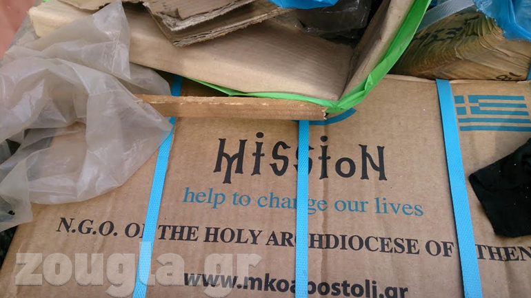 Πεταμένα σε κάδο σκουπιδιών βρέθηκαν το πρωί της Τρίτης χαρτοκιβώτια της ΜΚΟ ΑΠΟΣΤΟΛΗ της ιεράς Αρχιεπισκοπής Αθηνών.