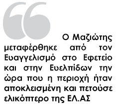 Ο Μαζιώτης μεταφέρθηκε μέσα σε λίγα λεπτά από τον Ευαγγελισμό στο Εφετείο και στην Ευελπίδων, την ώρα που η περιοχή ήταν αποκλεισμένη και πετούσε ελικόπτερο της ΕΛ.ΑΣ.