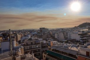 Ορατός στην Αθήνα ήταν εχθές Δευτέρα (30/9) ο καπνός από την μεγάλη πυρκαγιά που καίει για τρίτη ημέρα στην Κορινθία.