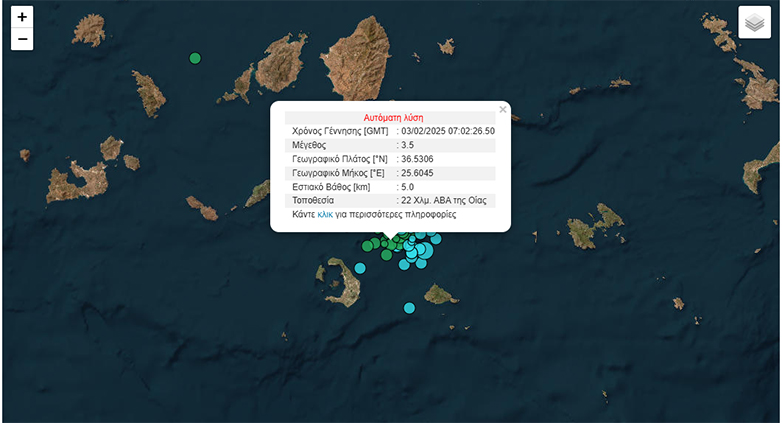 Θυμίζουμε ότι από την 24η Ιανουαρίου, στη θαλάσσια περιοχή της Ανύδρου, μεταξύ Σαντορίνης και Αμοργού, έχουν καταγραφτεί πάνω από 380 σεισμοί.