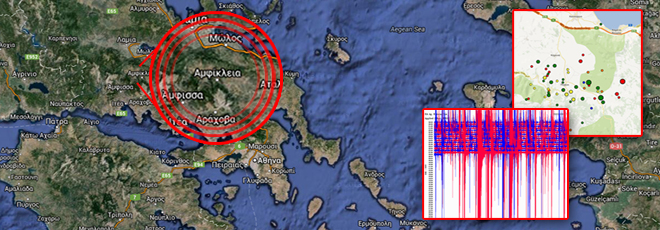 Τέλος, παρέθεσε στοιχεία από τις επιστημονικές μετρήσεις των διπλών σεισμικών δονήσεων στην Αμφίκλεια.