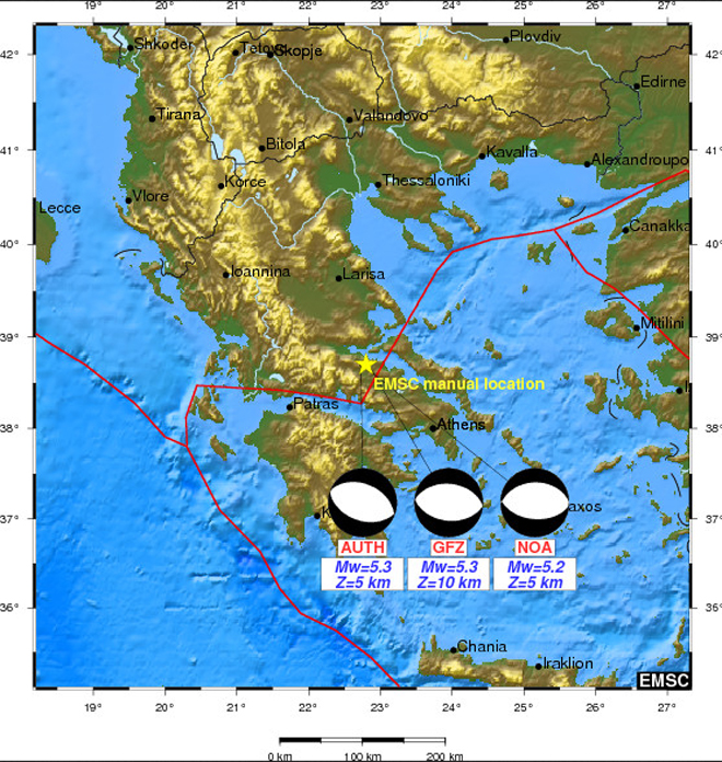 (ΑUTH: Η μέτρηση του Αριστοτελείου Πανεπιστημίου/GFZ : Η εκτίμηση του Γερμανικού Ινστιτούτου/ ΝΟΑ: Εκτίμηση του Γεωδυναμικού Ινστιτούτου με βάση το μέγεθος της σεισμικής ροπής)