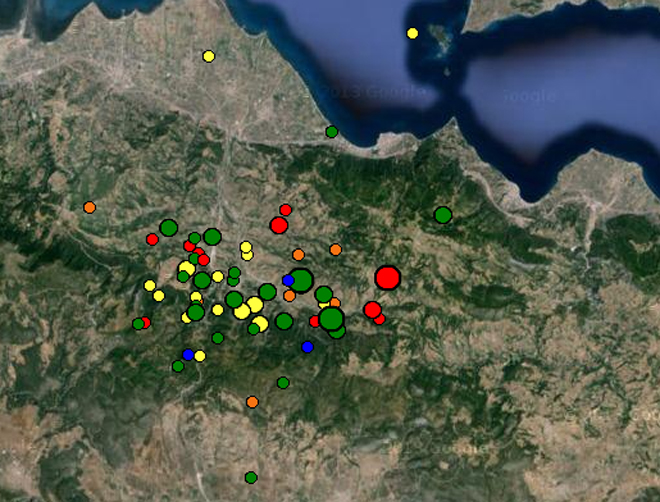 (Οι κουκίδες αποτυπώνουν τις μετασεισμικές δονήσεις)