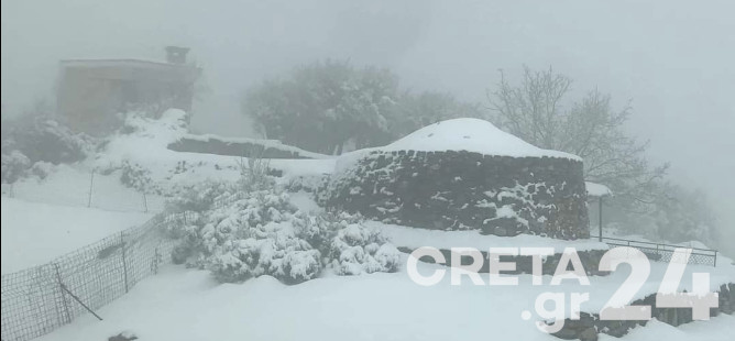 Το έστρωσε για τα καλά στα ορεινά της Κρήτης, με το ανοιξιάτικο χιόνι να έχει ασπρίσει τον Ψηλορείτη. Λίγο πάνω από τα Ανώγεια μάλιστα το ύψος του χιονιού φτάνει τους 30 πόντους.