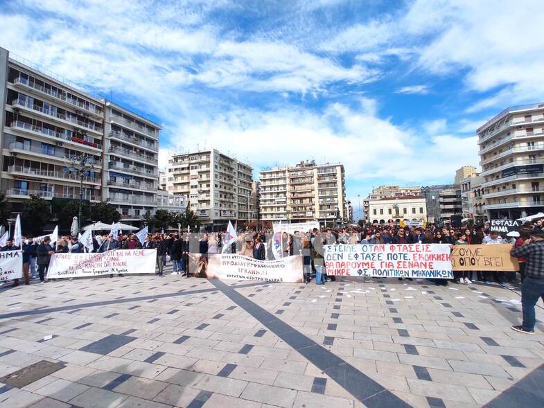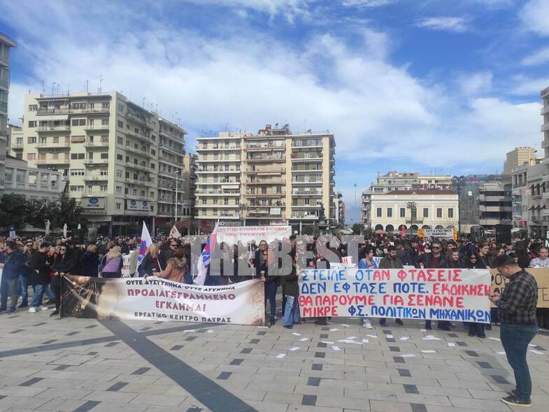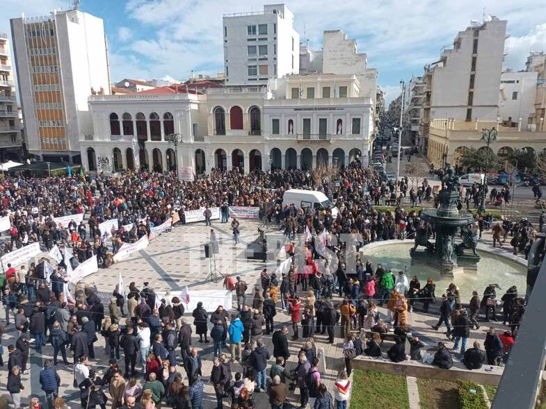 Στην Πάτρα πραγματοποιείται συγκέντρωση στην πλατεία Γεωργίου και πορεία στη συνέχεια στους κεντρικούς δρόμους. Η πλατεία έχει γεμίσει διαδηλωτές και θα ακολουθήσουν ομιλίες.