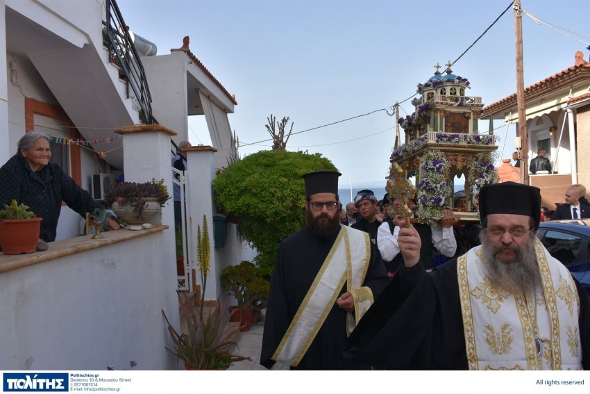 Με θρησκευτική κατάνυξη και υπό τους πένθιμους ήχους της Φιλαρμονικής του Δήμου Χίου, τελέστηκε η περιφορά του ιστορικού Επιταφίου της Αγίας Παρασκευής στο Καστέλο, 100 χρόνια μετά την τελευταία φορά που ο συγκεκριμένος Επιτάφιος λιτανεύθηκε στη Μικρασιατική γη.