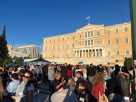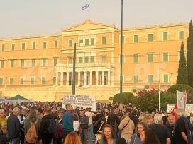 Συγκέντρωση αλληλεγγύης προς τον απεργό πείνας Πάνο Ρούτσι, τον πατέρα του 22χρονου Ντένις που σκοτώθηκε στο σιδηροδρομικό δυστύχημα των Τεμπών, πραγματοποιήθηκε το απόγευμα της Κυριακής (5/10) στο Σύνταγμα.