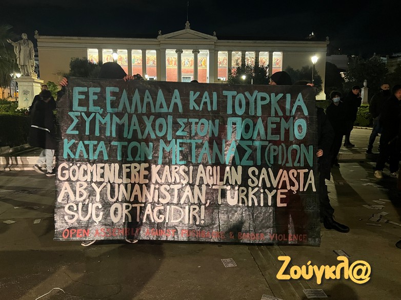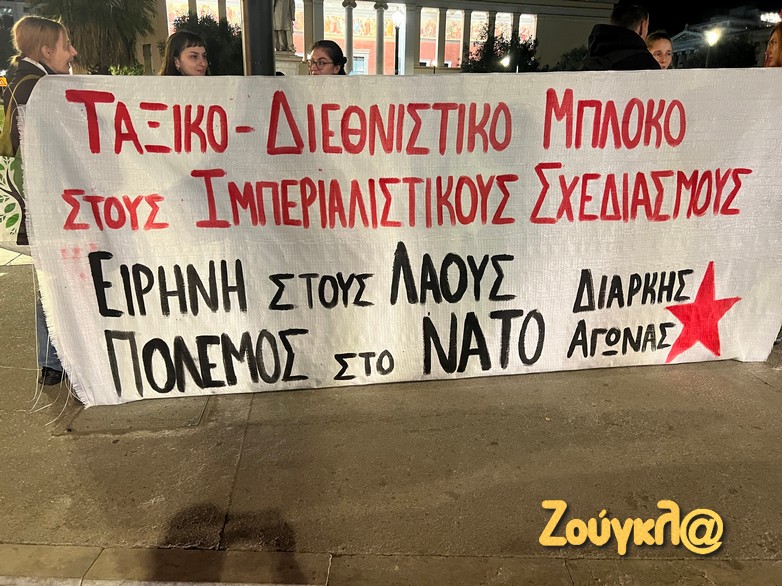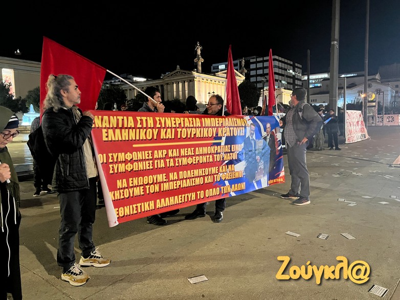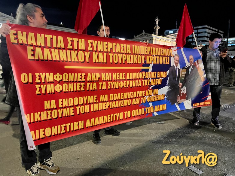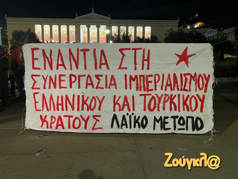 «Ενάντια στον φασισμό, τον ιμπεριαλισμό και τις διακρατικές συμμαχίες, ενάντια στην επίσκεψη Ερντογάν», αναφέρουν μεταξύ άλλων στα συνθήματα και τα πανό τους.