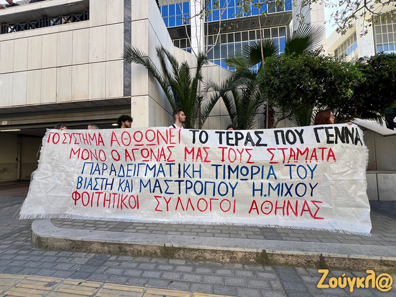 Σύλλογοι φοιτητών, ομοσπονδίες γυναικών, αλλά και η επιτροπή αλληλεγγύης στη 12χρονη, που αποτελεί το θύμα της υπόθεσης σεξουαλικής εκμετάλλευσης, περιμένουν έξω από το κτήριο την τελική απόφαση για τους 26 κατηγορούμενους, ανάμεσά τους η μητέρα του κοριτσιού, αλλά και ο Ηλίας Μίχος.