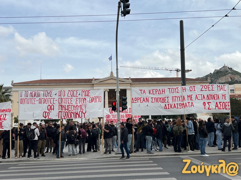 Συγκέντρωση εκατοντάδων φοιτητών και φοιτητικών οργανώσεων πραγματοποιήθηκε νωρίτερα στα Προπύλαια, ενόψει του πανεκπαιδευτικού συλλαλητηρίου που ξεκίνησε μετά τη 1 το μεσημέρι.
